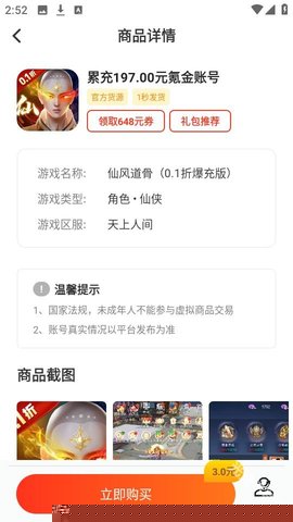 内置交易中心,方便购买心仪游戏账号。