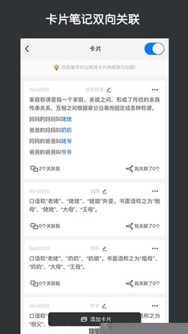 通过为卡片添加标签或将其归入特定项目进行分类。利用链接功能,将当前卡片与已有知识卡片建立双向关联。