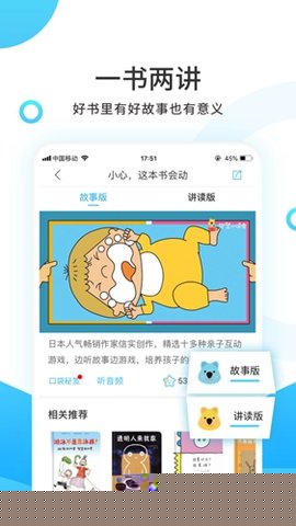 选择书籍进入详情页,可播放音频讲解或开启亲子共读模式,部分内容支持投屏至电视。