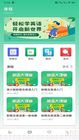 在软件首页使用课程查找功能,可通过关键词搜索或浏览推荐分类,快速定位到拼音、语言学习或职业技能等领域的相关课程内容。