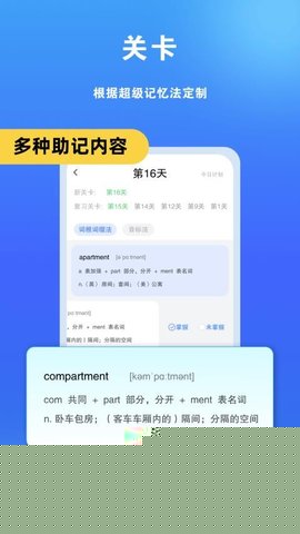 提供词根词缀、音频跟读等多种助记方法,适配不同学习习惯。