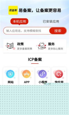 易备案是一款专注于互联网备案服务的实用工具,不管是app开发者还是企业管理人员都可以进行线上备案,提交相关资质即可,也可以方便用户来查询备案信息,更加高效,准确,欢迎前来使用。