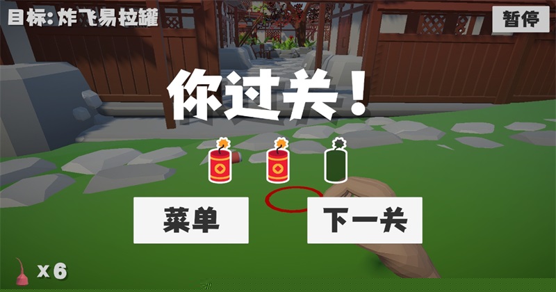 后续关卡将引入点燃机制。需使用虚拟打火机点燃手持的鞭炮引信,并在计时内将其投出,以完成爆破特定目标或达成连锁反应等进阶任务。