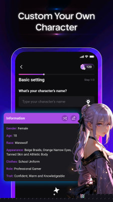 在角色创建界面,依次对发型、脸型、服饰等外观元素进行选择,并设定基础性格标签与对话风格,确认后即可生成独一无二的专属伙伴。