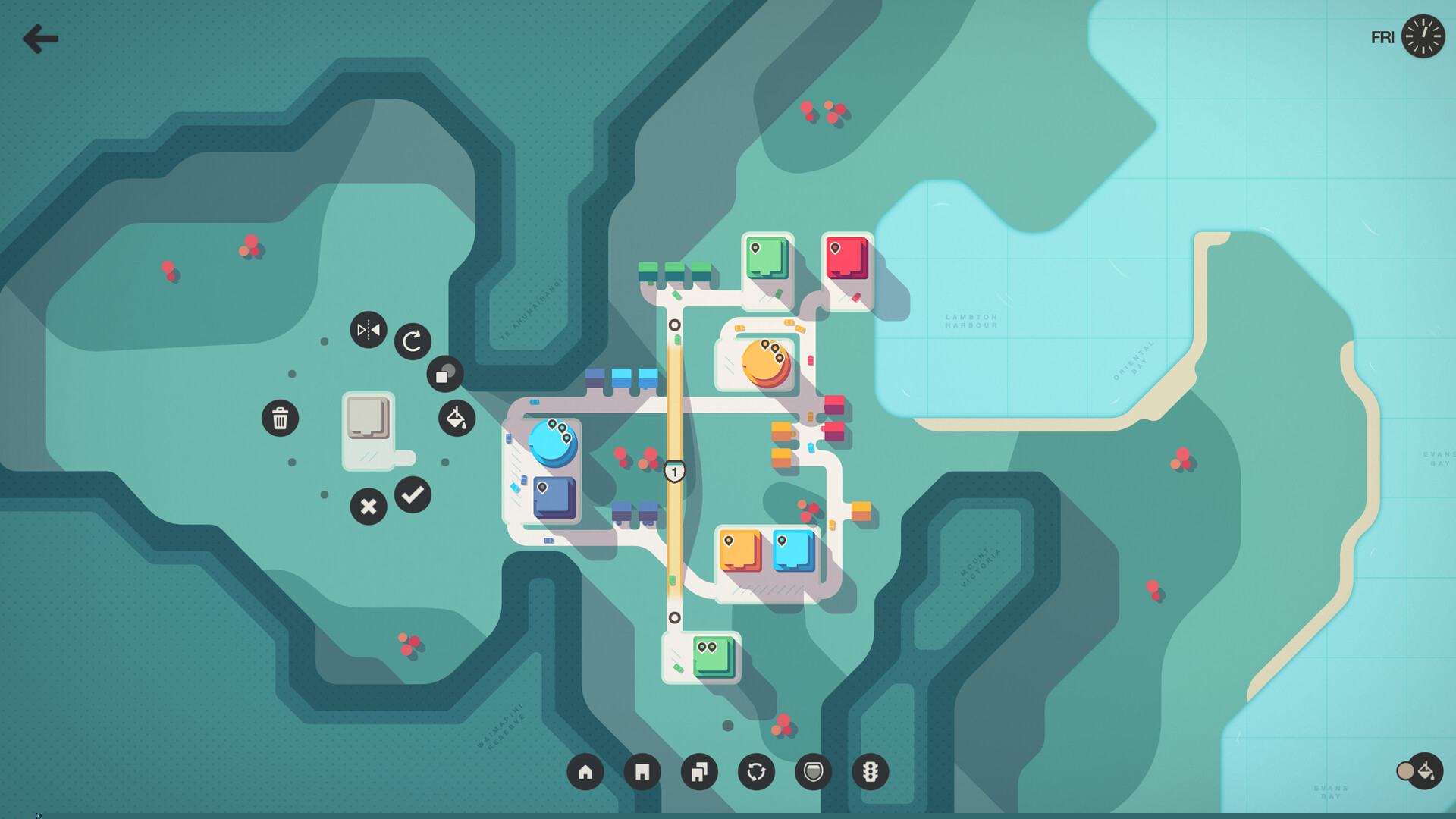 开局阶段,观察住宅与目的地建筑的分布,用最短路径进行初步连接。优先保证每条道路的连通性,避免断头路。