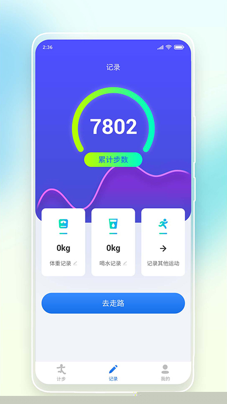 日常行走时,数据会自动同步。如需记录体重或饮水,可在个人中心相应模块手动添加并保存。