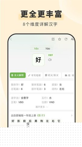相比基础字典,提供成语典故、汉字演变及近反义词关联。