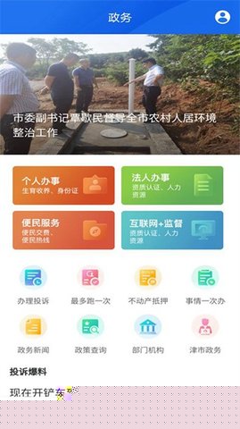 登录进入主界面,可根据需求浏览政策公告或选择具体的政务办理模块。