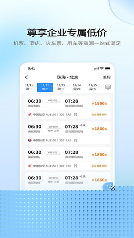 软件内提供的机票、酒店等资源均为企业协议价格,通常较市场公开渠道更具价格优势,可直接在预订页面查看。