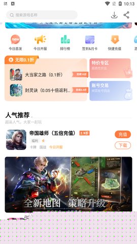提供独家礼包与充值优惠。