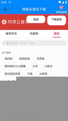 通过内置搜索框输入歌曲、歌手或专辑名称,定位目标音乐资源。