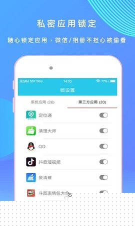 进入软件列表界面,勾选需要加密的软件并启用锁定功能。