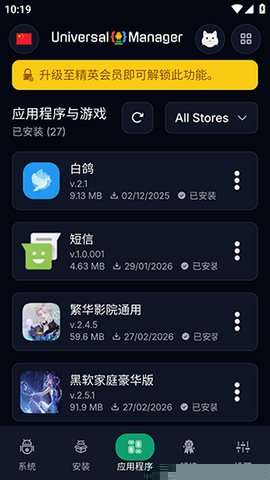 启动UniversalManager后,系统将自动适配界面语言。首次使用需授予必要的存储访问权限。