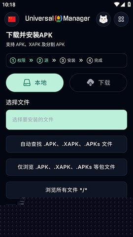 UniversalManager支持主流的Android分发格式,包括基础的APK,以及复合格式的XAPK、APKS、APKM,兼容Android App Bundle生成的AAB文件。