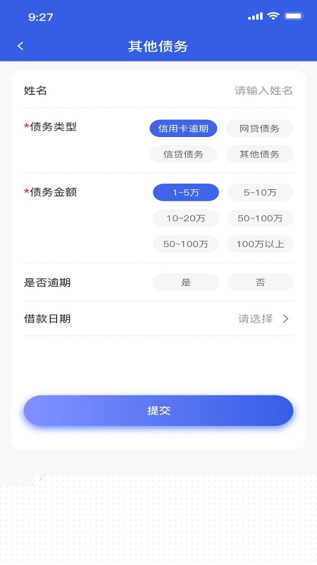 根据引导选择对应的债务类型与服务模块,系统将基于智能诊断结果生成初步分析报告。