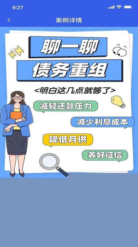 软件集成了在线法律咨询服务,用户可就债务重组方案、协议条款等直接向专业法律人士进行咨询。