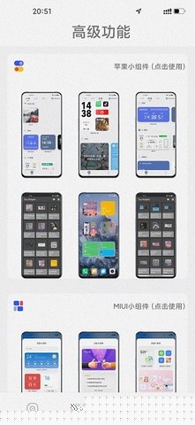确认无误后,点击软件按钮即可一键更换全局主题。随后可在小组件中心添加所需的iOS风格功能组件到桌面。