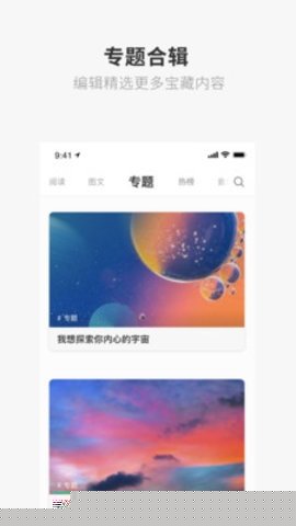 针对用户碎片化时间与夜间阅读场景,提供以文章朗读、音乐故事为主题的音频内容,将视觉阅读转化为听觉陪伴,缓解用眼疲劳。