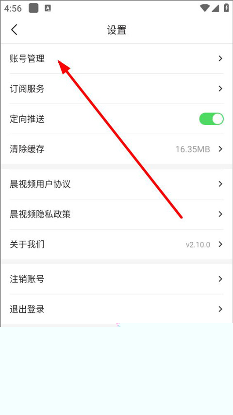 3、设置页面,用户可查看订阅服务、定向推送设置等,点击账号管理;