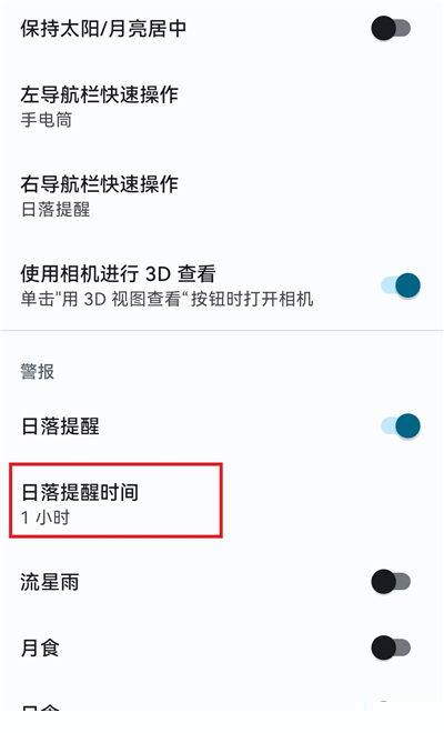 如何设置日落时间提醒?