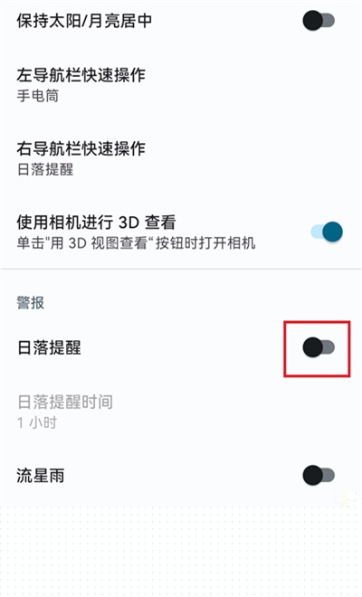 3、开启【日落提醒】右边的滑块按钮。