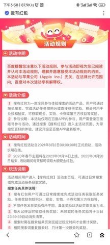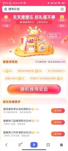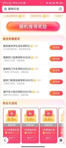 搜有红包是一款由百度推出的福利活动软件,用户通过完成平台设定的各类任务,即可获得现金红包与积分奖励,实现日常网络行为的价值转化。活动设计以搜索任务为核心,结合限时活动与积分体系,将用户参与转化为实际收益,操作流程直观,奖励形式多样,提升用户粘性与活跃度。