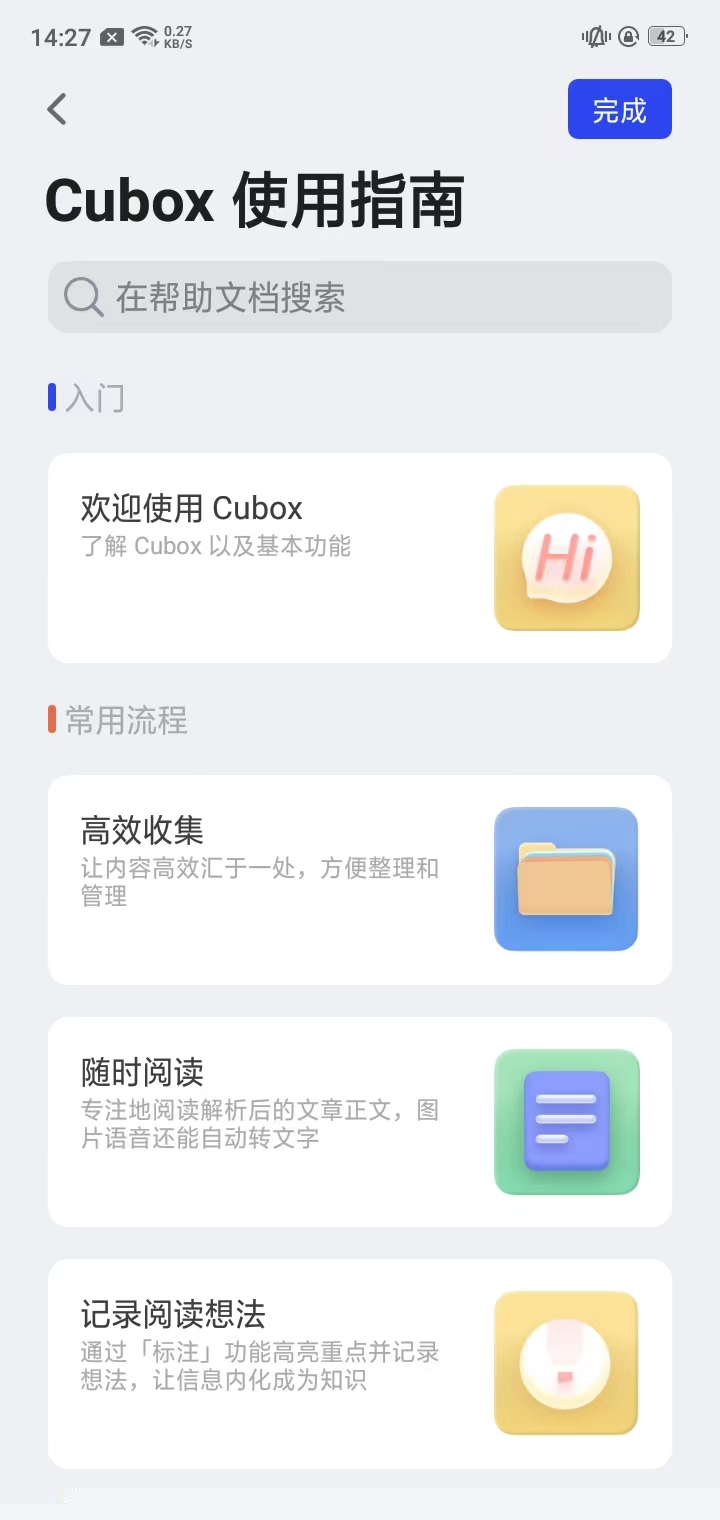 3、首次登录会出现cubox使用指南,感兴趣的用户可以点进去看看;