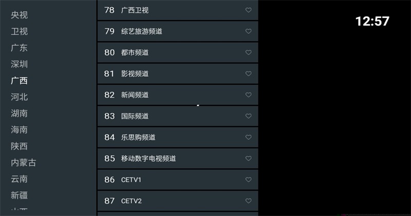 在频道列表的地方或省市分类栏目下进行查找与选择。
