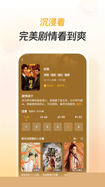 采用全屏竖屏播放模式,贴合手机使用习惯,单手持握即可流畅操作,滑动切换剧集,带来无缝衔接的观看感受。