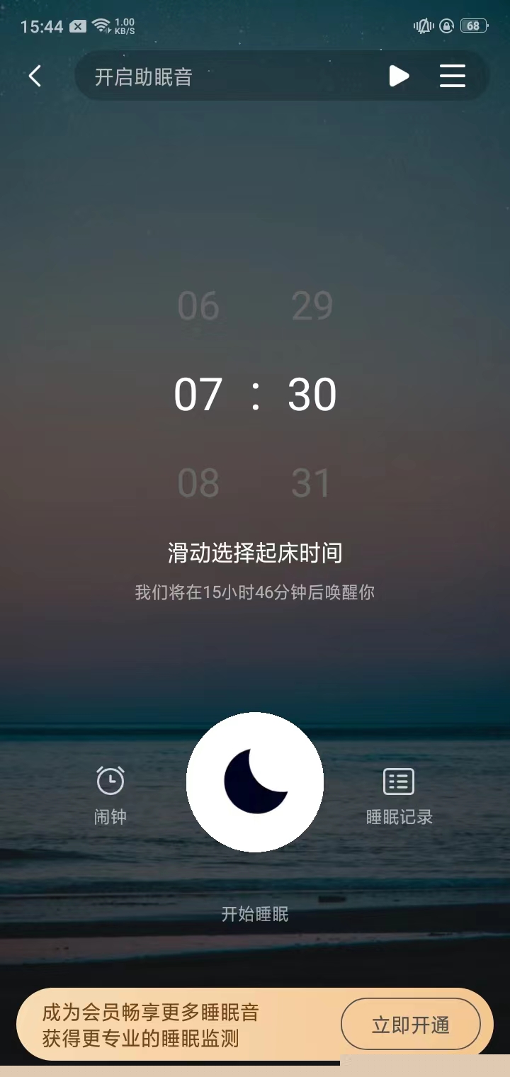 4、在下方【睡眠】功能中,用户可以设置自己的起床时间,点击左方的闹钟图标,可以进行闹钟铃声、轻唤醒、轻唤醒场景音的设置;