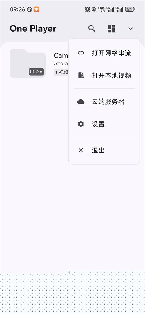 2、点击打开网络串流或打开本地视频或云端服务器
