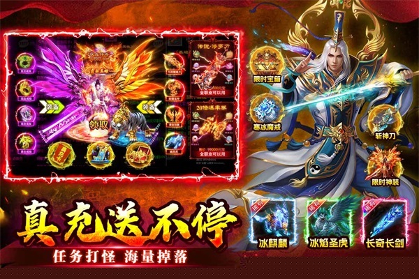 摒弃了传统设定中高级装备仅限BOSS掉落的模式,实现了小怪也可爆出红装,全服BOSS必爆真充卡,这种全场景高爆设定,直接提升了每场战斗的收益预期与正反馈。