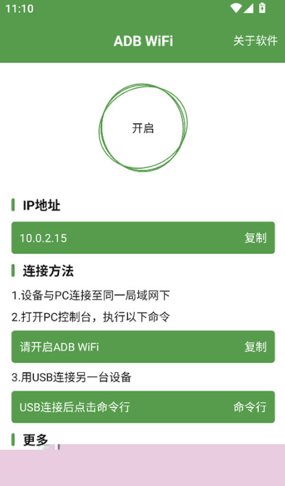 1、首先安卓设备和电脑需要在同一个wifi下,然后打开app后点击【开启】。