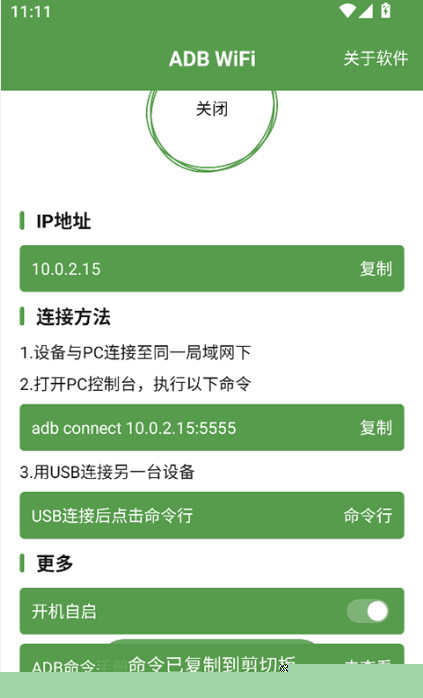 执行连接命令后,能够通过ADB通道获取并返回设备的实际网络连接状态与获取的IP地址等信息,提供明确的操作结果反馈。