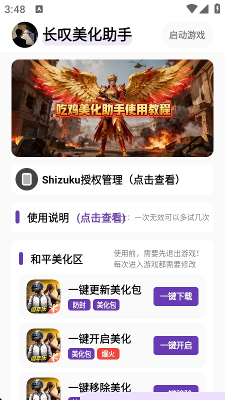 检查长叹美化助手是否为最新版本,并确认其支持的和平精英游戏版本号。