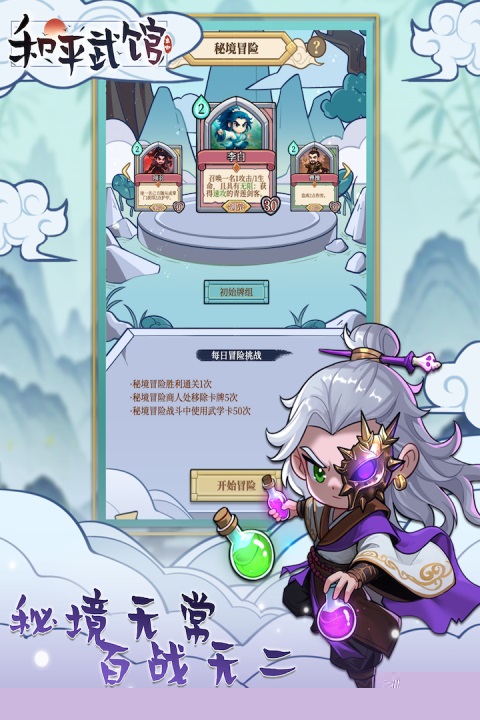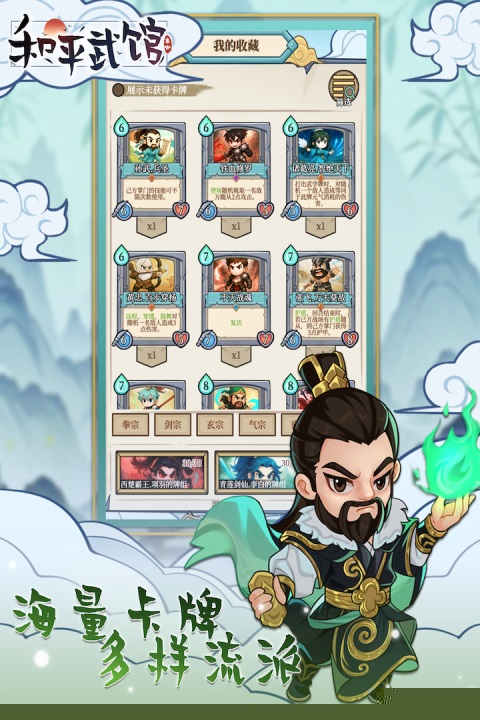 和平武馆是一款融合了策略卡牌构筑与空间布局的竖版CCG手游,通过收集并组合不同技能的英雄与卡牌,在1V1的回合制对战中,运用能量管理、卡牌协同与阵型排布来击败对手,体验兼具深度与爽快感的策略竞技乐趣。