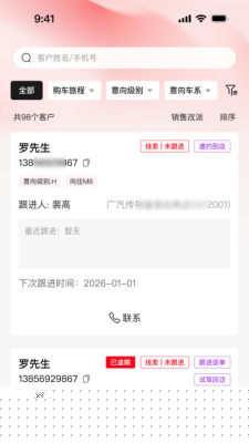 销售顾问可随时随地更新客户跟进记录、设置提醒及查看待办事项,确保服务连续性,经理可在线管理团队。