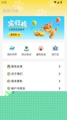 打开在本站下载好的宠行宝。进入首页点击世界。点击右下方的相机图标。会弹出上图弹框,点击前往登录。阅读用户隐私政策,点击同意。实时查看周边活跃的宠友,支持文字、语音、图片等多种形式的即时聊天,方便邀约线下聚会或交流养宠心得。