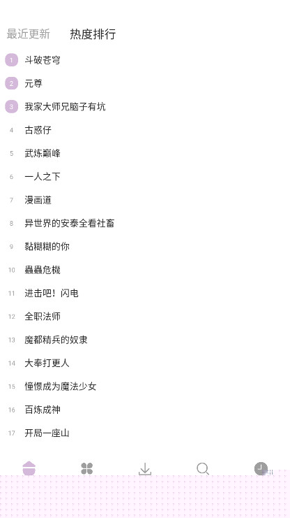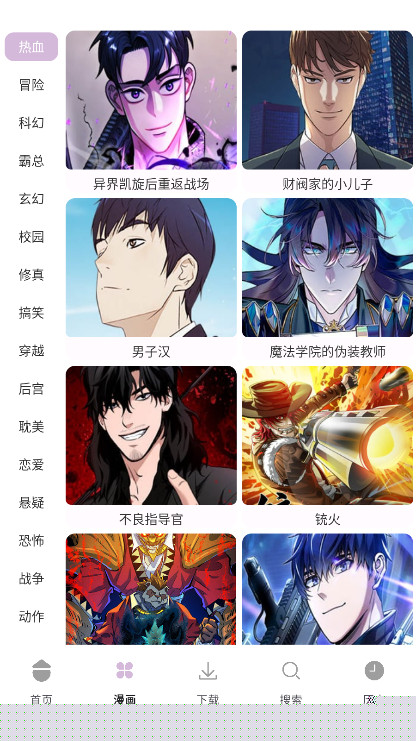 启动软件后,首页会展示最新更新的漫画作品。用户可通过顶部的搜索框直接查找目标资源。