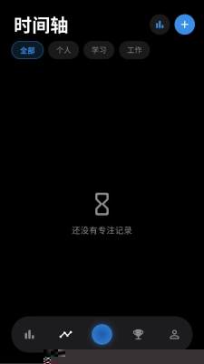 在软件主界面底部导航栏选择统计页面,可查看日、周、月、年多维度专注数据,包括总时长、完成次数及趋势图表。