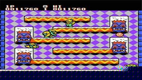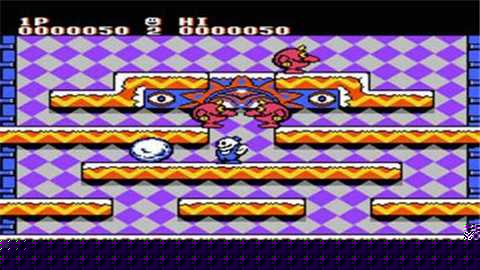 核心目标是清除每层所有怪物。通过方向键控制雪人移动,攻击键发射雪球。雪球击中敌人会将其冻成雪球,推动雪球可撞击其他敌人或撞碎获取分数。