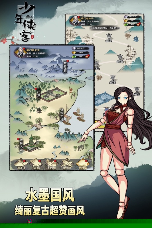 与各路侠客的互动关系影响剧情走向,更可解锁合击技或获得属性加成,社交系统与成长体系深度绑定。