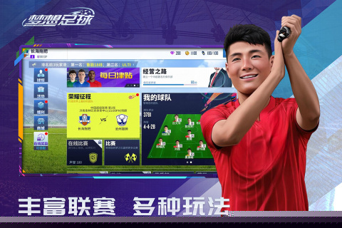 梦想足球体验服是一款基于真实足球竞技体验开发的模拟产品,为提供了一个沉浸式的虚拟绿茵场。组建自己的梦之队,参与紧张刺激的联赛与杯赛,通过策略布阵与临场指挥,体验从战术制定到临门一脚的完整足球魅力,感受运筹帷幄的经理人角色与激情四射的赛场对决。