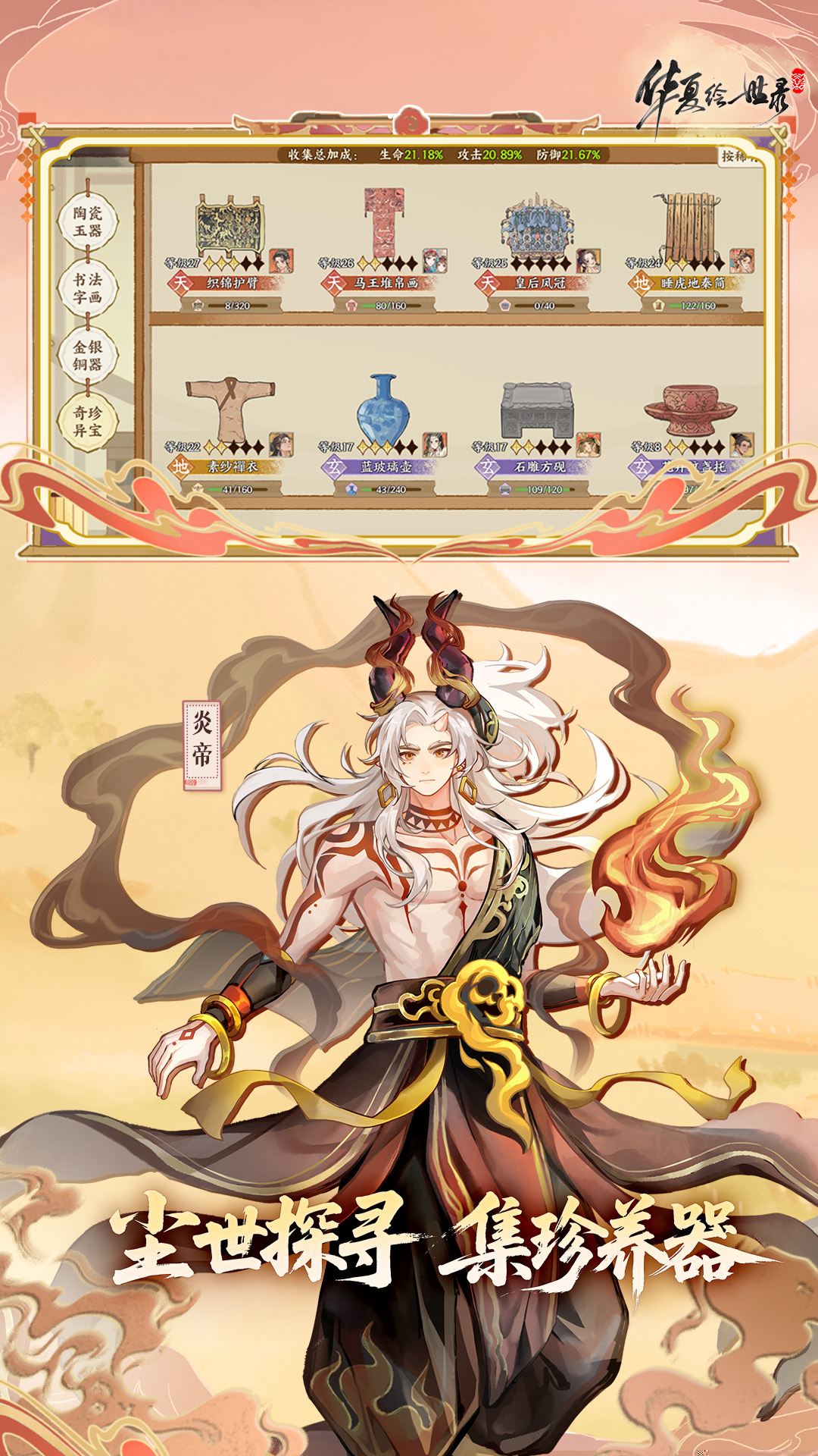 华夏绘世录是一款以中华五千年文明为背景的沉浸式历史模拟手游,将化身执笔绘世的记录者,在动态的山河社稷图中亲历文明演进,通过收集名士、鉴赏文物、触发历史事件等多元互动,体验一段不肝不氪、充满人文温度的放置养成之旅。