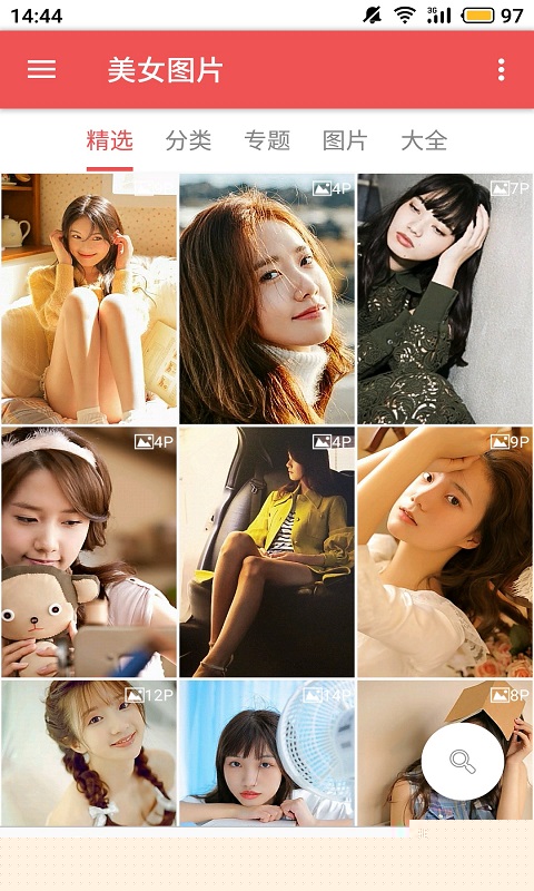 启动软件后,主界面会展示按主题分类的图片流。通过左右滑动屏幕可以快速浏览当前分类下的内容。