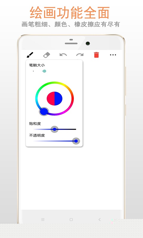 支持自由调整笔触粗细及颜色,橡皮擦尺寸亦可精细控制。