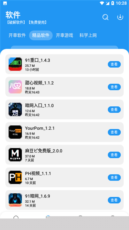 获取安装包后,完成软件的安装与启动。进入主界面后,可通过底部导航栏浏览不同分类的软件列表。