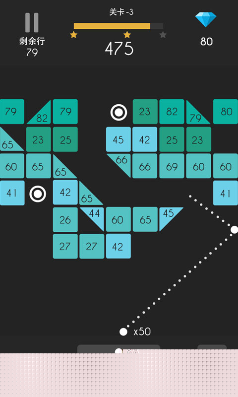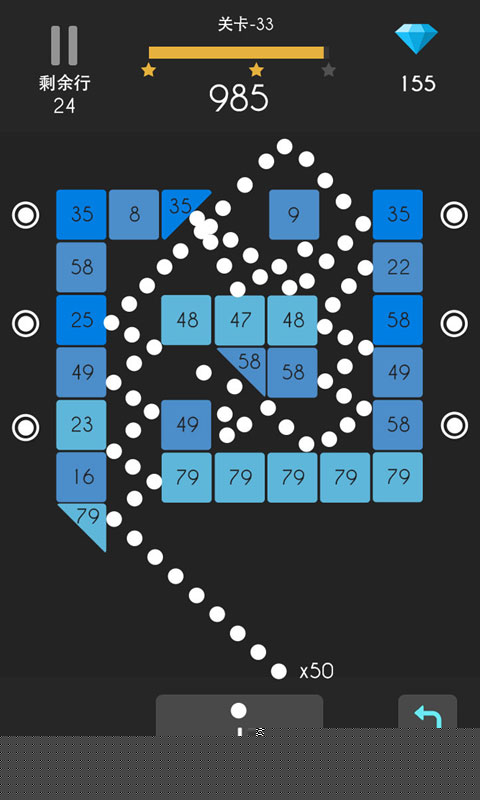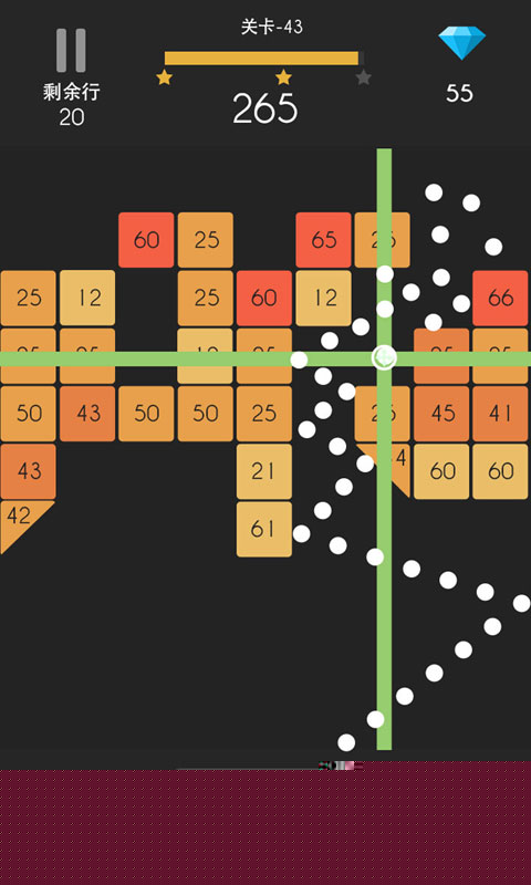 核心操作在于滑动屏幕控制发射器,预判弹珠的反弹路径。