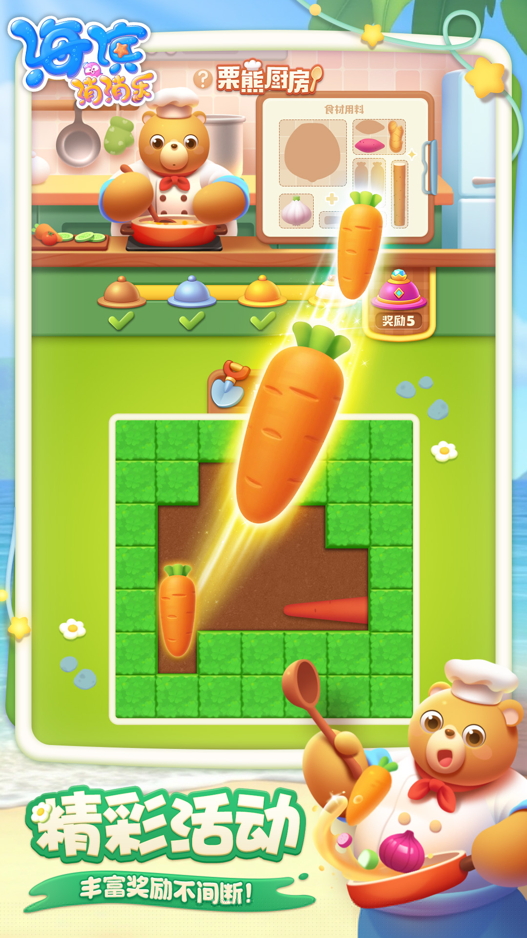 海滨消消乐是一款以清新海洋世界为背景的休闲益智类手游,将在阳光沙滩与蔚蓝海浪的陪伴下,通过趣味十足的消除挑战开启一段轻松愉悦的冒险旅程。其核心玩法围绕经典三消展开,并融入了丰富的主题关卡与创意障碍,为带来持续的新鲜感与策略乐趣。