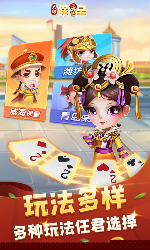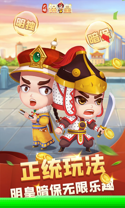 大眼保皇是一款源自山东青岛的经典五人扑克牌游戏,融合了策略、推理与团队协作。分为保皇派与平民两大阵营,通过出牌竞技展开智谋对决,暗保身份的设定增添了悬念与趣味,让每一局都充满变数与惊喜。
